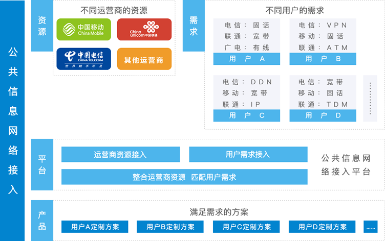 優狐網絡自(zì)主研發的(de)公共信息網絡 ₽♣&接入平台,通(tōng)過整合中國(guó)移動、中國(guó)聯通(★→tōng)、中國(guó)電(diàn)信等多(duō)家(jiā₽☆)基礎電(diàn)信運營商的(de)業(yè)務資源,使客戶僅>±≥通(tōng)過一(yī)個(gè)平台就(jiù)能(n'£♦éng)獲取最全面的(de)基礎電(diàn)信業(yè)務項目,并在平台上(¥γ♦shàng)有(yǒu)效實現(xiàn)需求,解決客戶因業(yè)務¥∏分(fēn)散而帶來(lái)的(de)諸多(duō)不(b"≈<•ù)便。